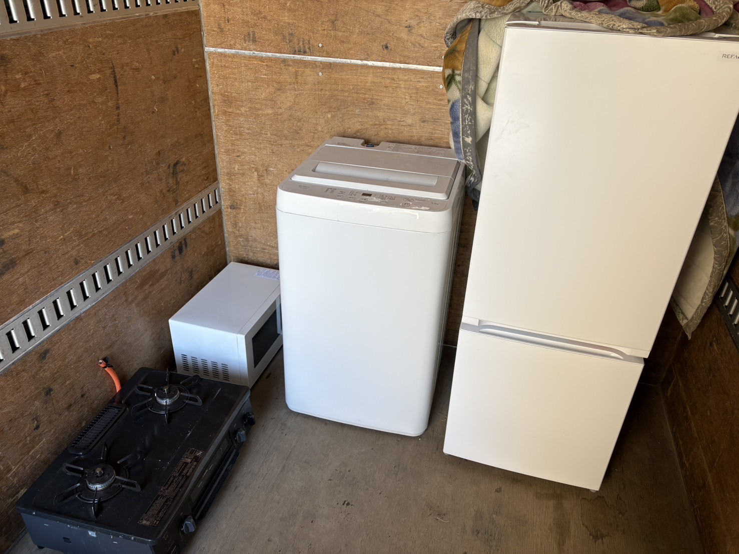 - 冷蔵庫、洗濯機、電子レンジ、ガスコンロ
